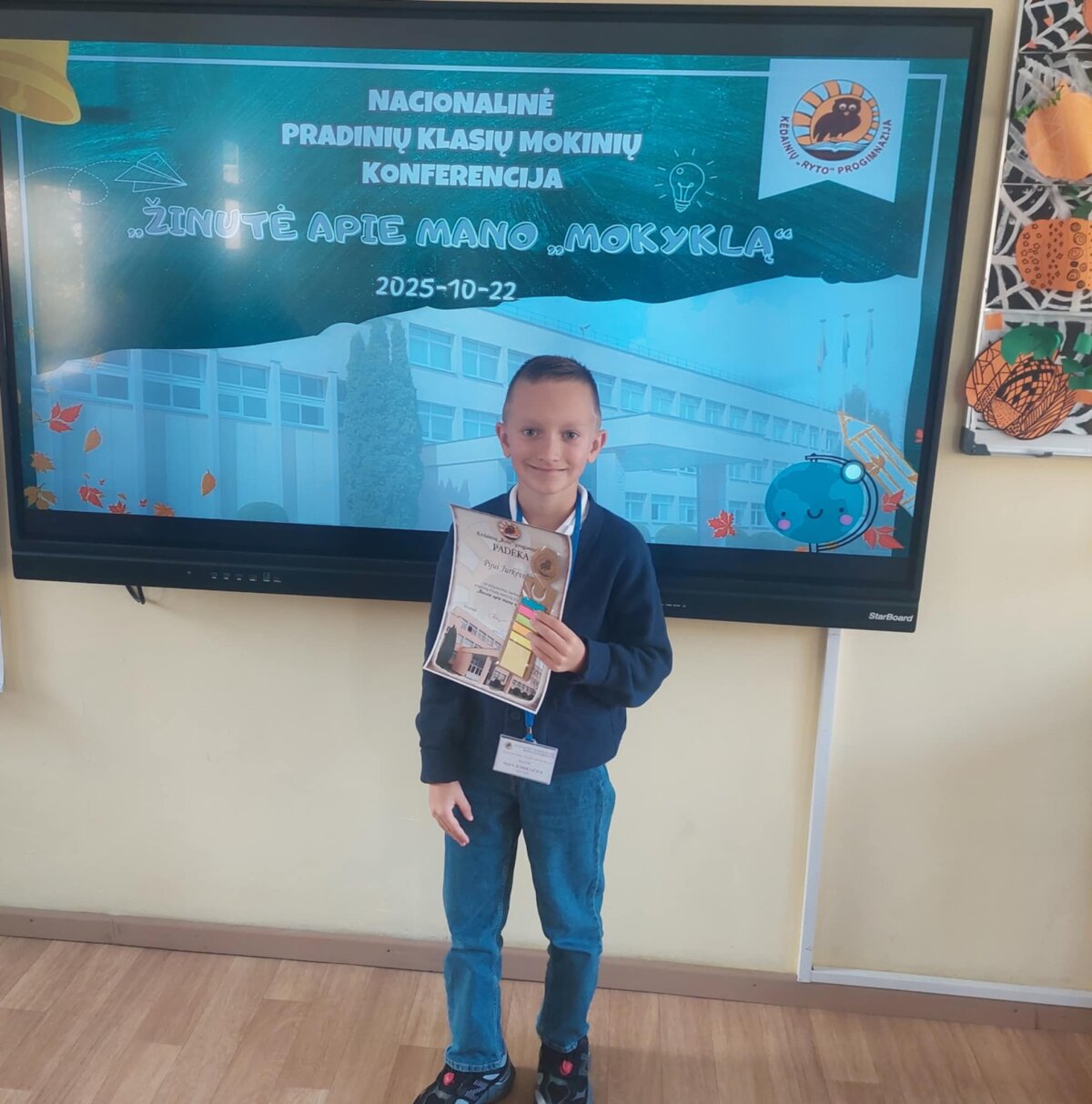 Spalio 22 dieną mokyklos pradinukai Arijana ir Pijus dalyvavo nacionalinėje pradinių kl. mokinių konferencijoje ,,Žinutė apie mano mokyklą", kurią organizavo Kėdainių ,,Ryto" progimnazija. Mokinukai skaitė pranešimus ,,Radviliškio r. Sidabravo pagrindinės mokyklos istorija" ir ,,Gerumo Spindulėlis". Ačiū mokiniams už dalyvavimą!