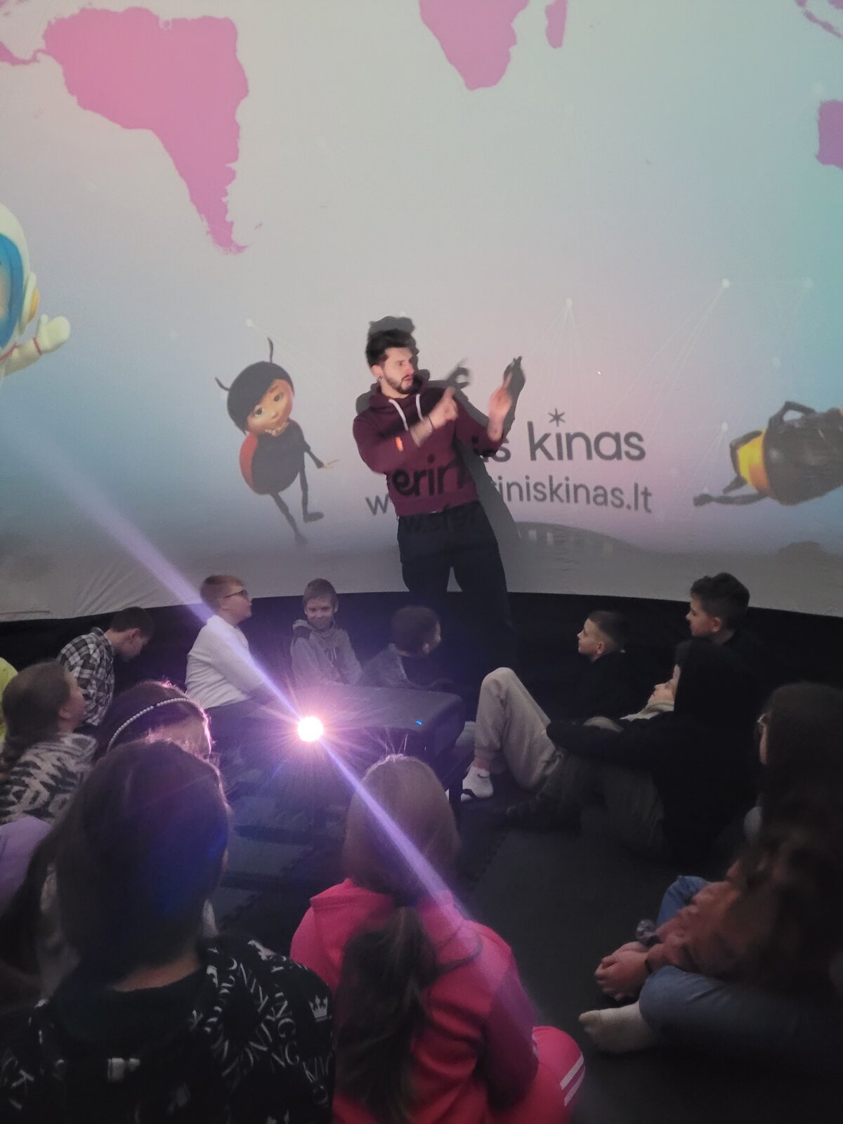 Sausio 12 d. vyko Kultūros paso edukacija „Sferinis kinas“. Edukacijos metu mokiniai stebėjo sferinius filmus specialiame kupole, patyrė įtraukiančią vaizdo ir garso aplinką bei praplėtė žinias apie kino technologijas. Mokiniai leidosi į nepamirštamas virtualias keliones po žmogaus organizmą ir ląsteles, stebėjo metų laikų kaitos pasakojimą bei susipažino su aviacijos sukūrimo istorija. Vaikai buvo sužavėti vaizdais ir jų perteikimu, pasisėmė naujų žinių bei įspūdžių. Edukacijoje dalyvavo 1–10 klasių mokiniai.
