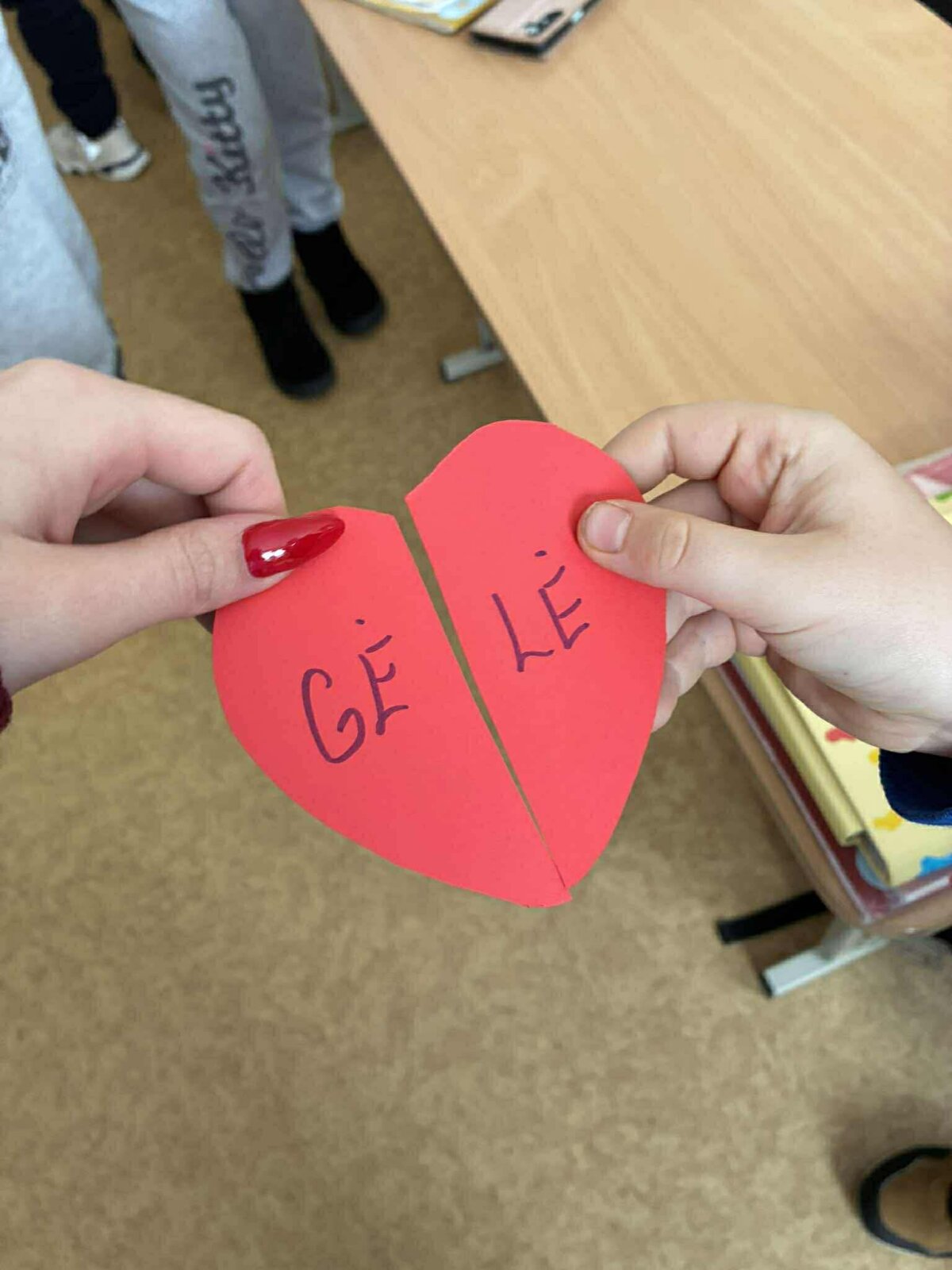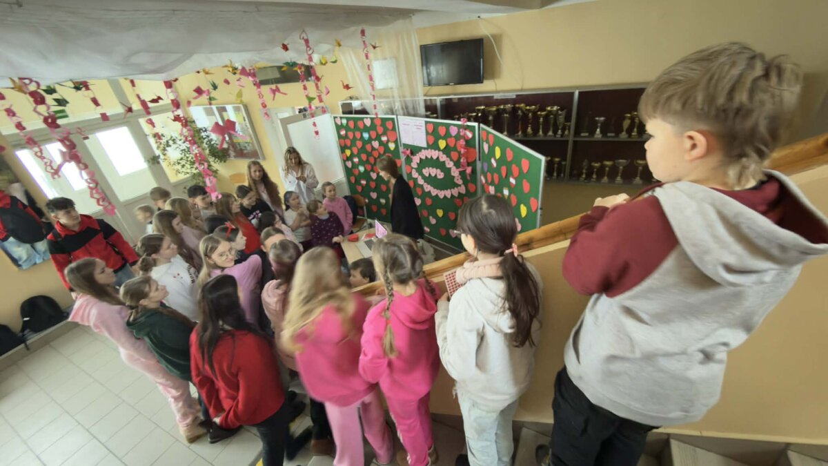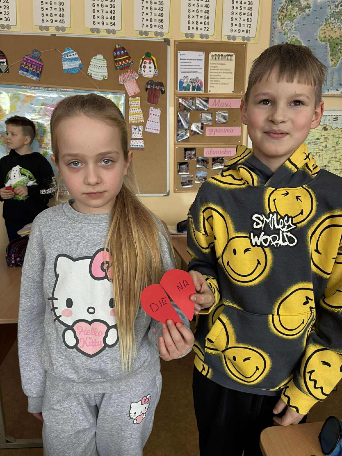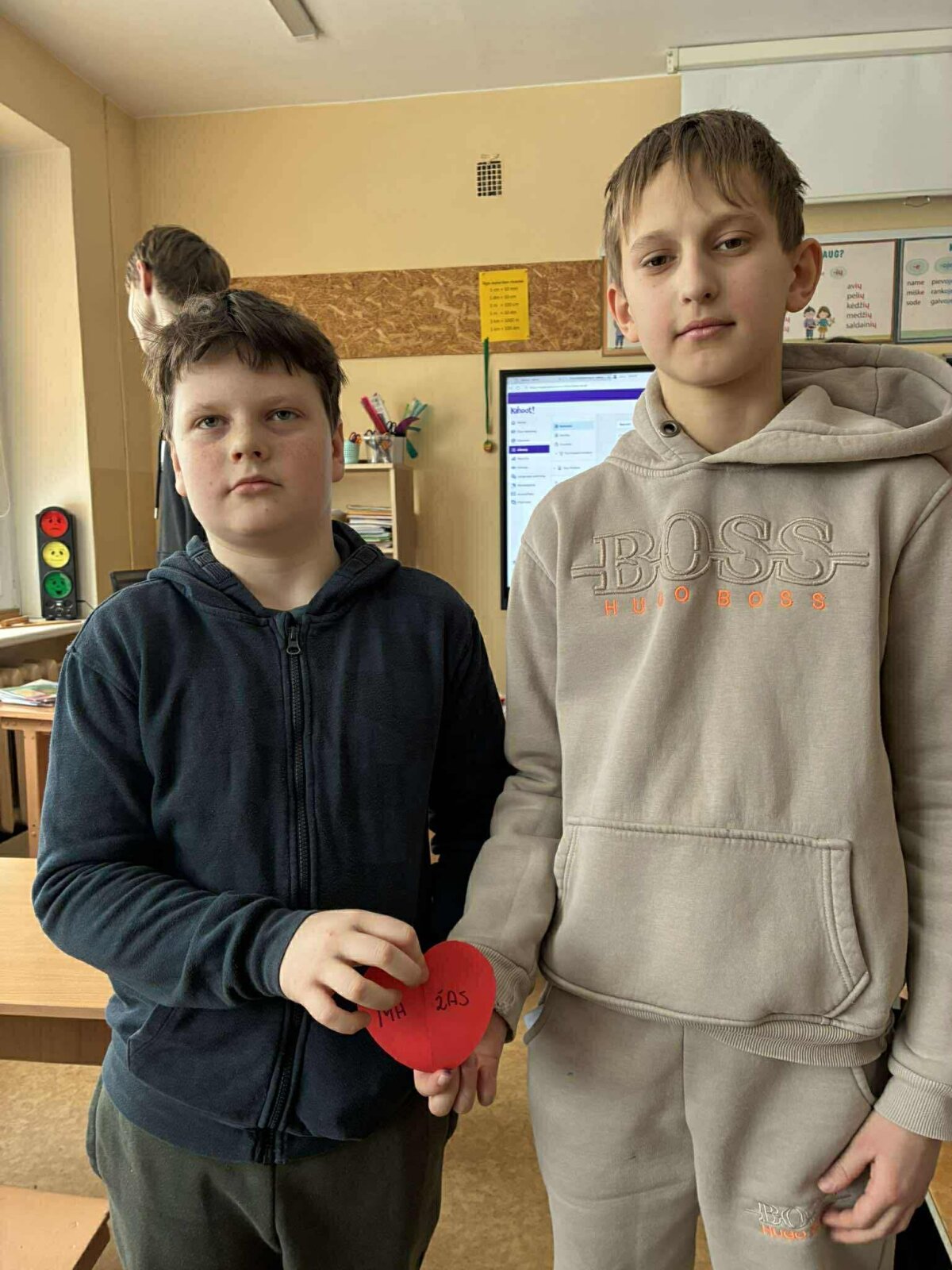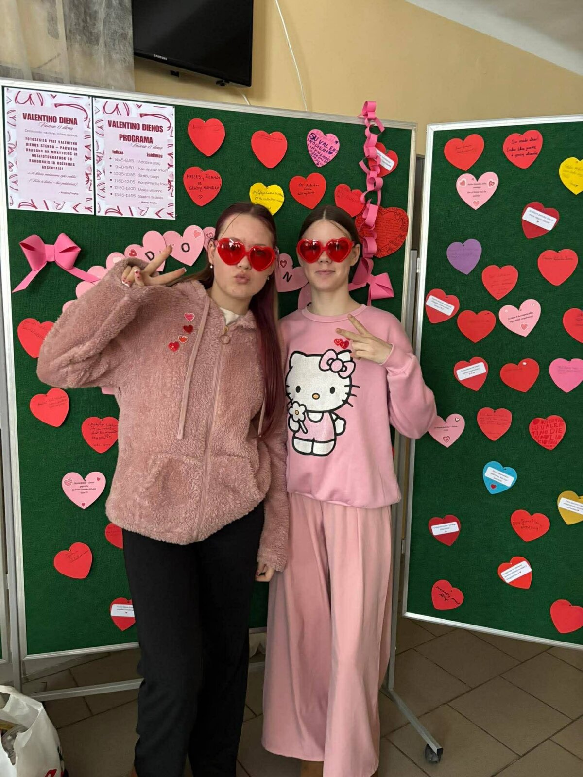 Vasario 13 d. 1–2 klasių mokiniai kartu su mokinių tarybos narėmis žiūrėjo valentinine tema parinktą filmuką ir taip pat rašė palinkėjimus.