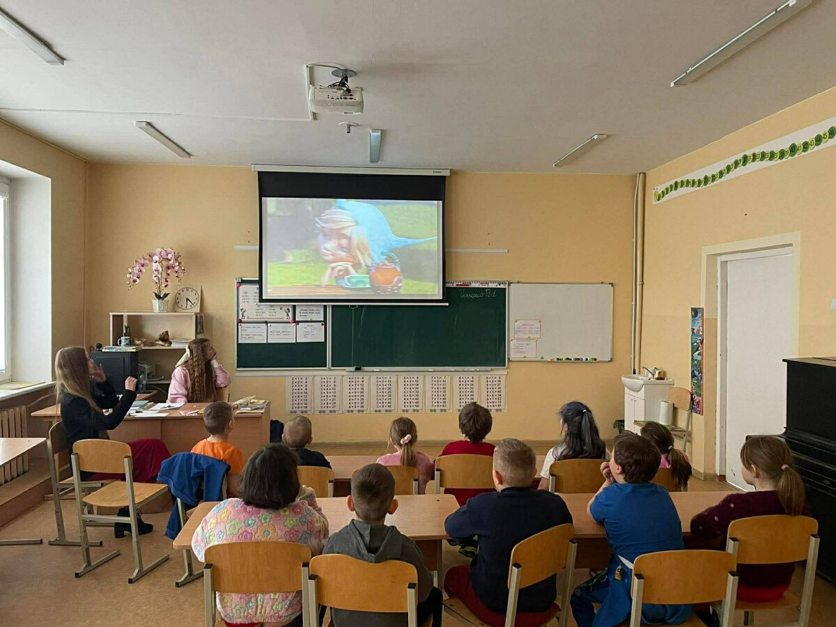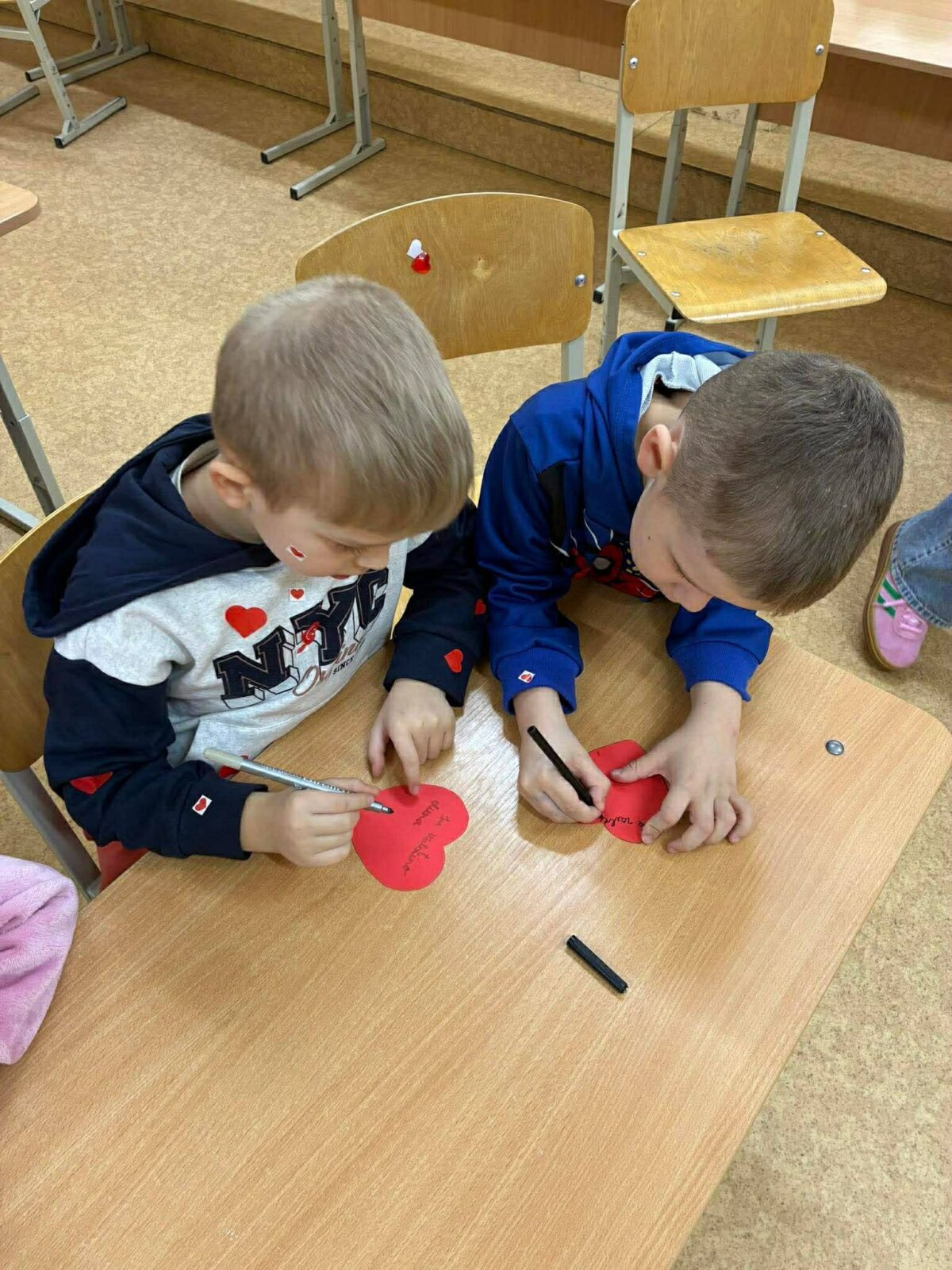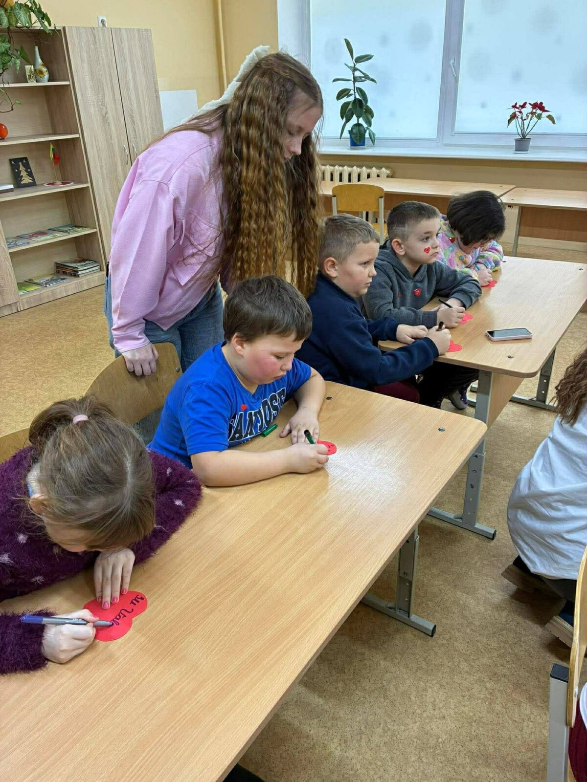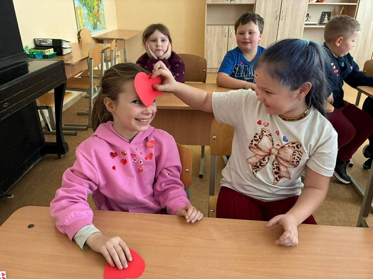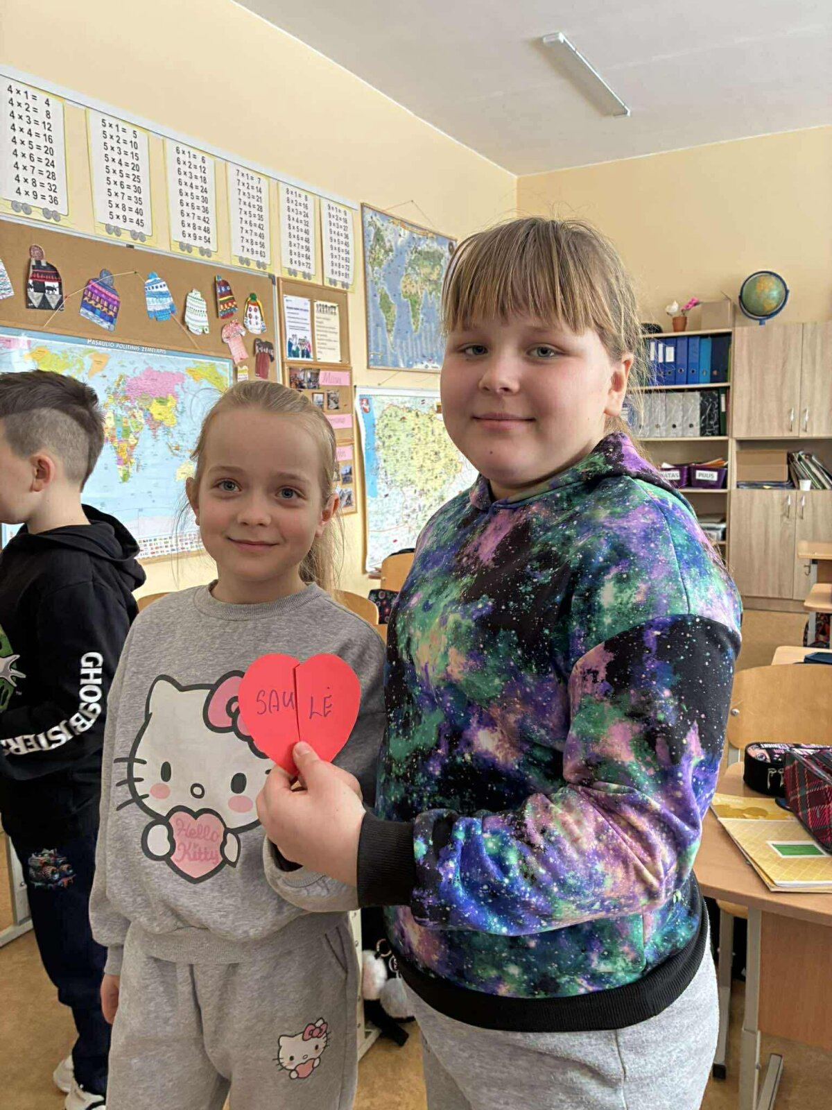 Vasario 13 d. 1–2 klasių mokiniai kartu su mokinių tarybos narėmis žiūrėjo valentinine tema parinktą filmuką ir taip pat rašė palinkėjimus.