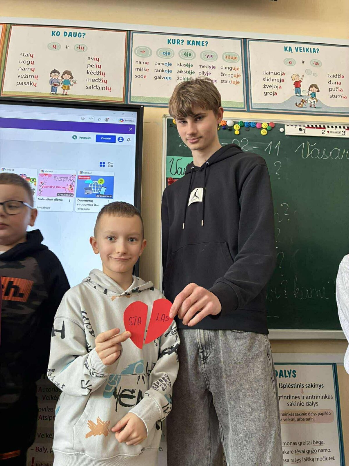Vasario 11 d. su 3–4 klasių mokiniais vyko „Kahoot“ viktorina, kurią vedė mokinių tarybos nariai. Taip pat mokiniai rašė vieni kitiems gražius palinkėjimus, skatindami draugiškumą ir pagarbų bendravimą.