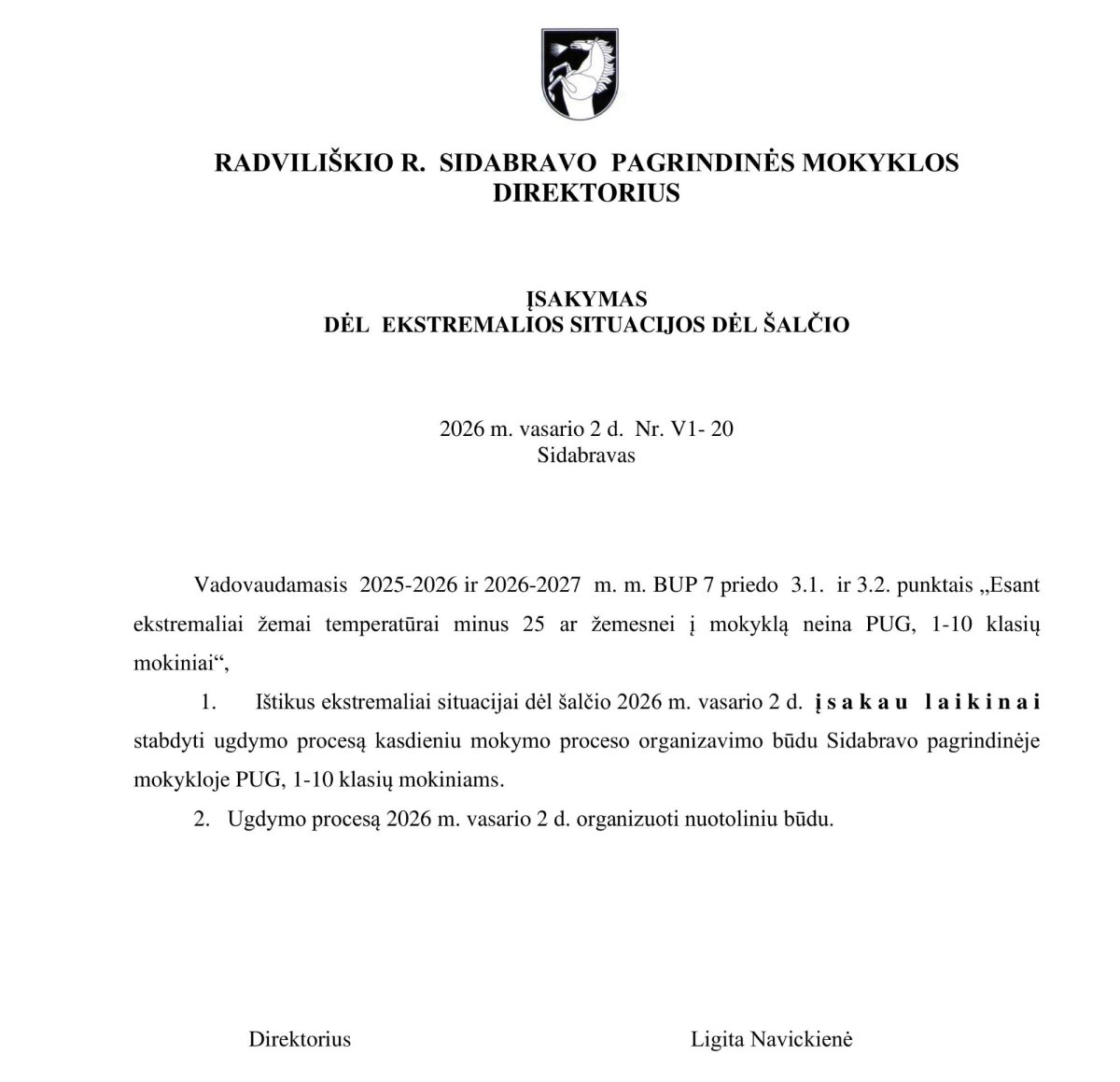 Dėl susidariusių ypatingų aplinkybių (gausaus ilgalaikio sn...