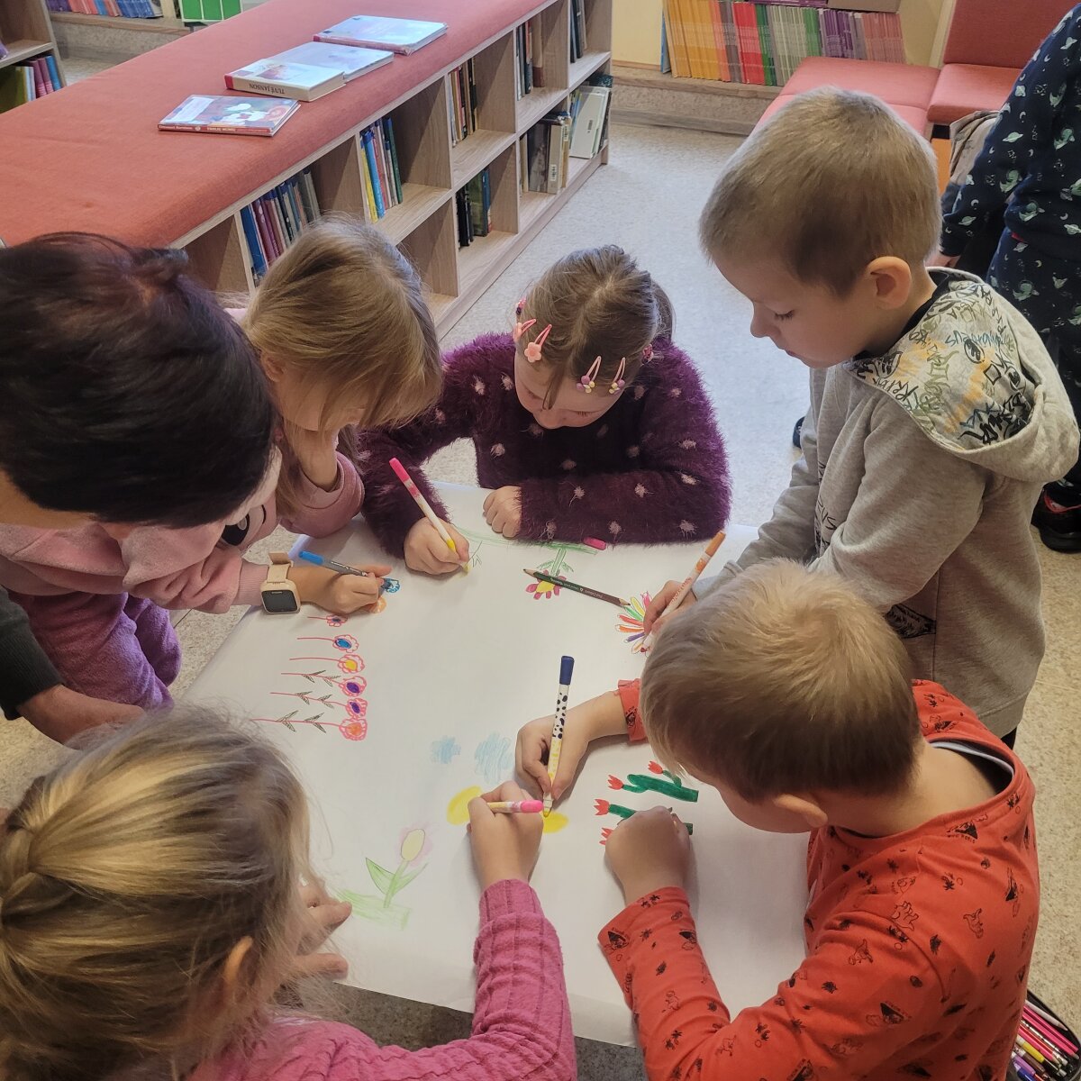 Šiandiena mokyklos bibliotekoje vyko ypatinga pamoka pirmokams ir antrokams, skirta Šiaurės šalių literatūros savaitei. Mokiniai susipažino su žymia rašytoja Tove Jansson ir jos sukurtu nuostabiu Trolių Mumių pasauliu. Vaikai klausėsi pasakojimo apie nuotykius Mumių slėnyje, diskutavo apie draugystę, drąsą ir rūpestį vieni kitais. Po skaitymo pamokos mokiniai kūrybiškai reiškė savo įspūdžius – piešė Mumių slėnį, įsivaizduodami, kaip jis atrodytų, jei jie patys ten gyventų. Tokios veiklos ne tik ugdo skaitymo įgūdžius, bet ir skatina vaikų vaizduotę, kūrybiškumą bei domėjimąsi literatūra iš įvairių pasaulio šalių.