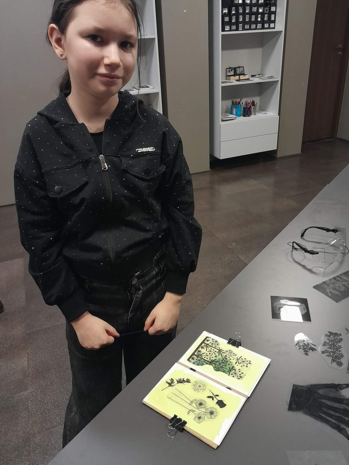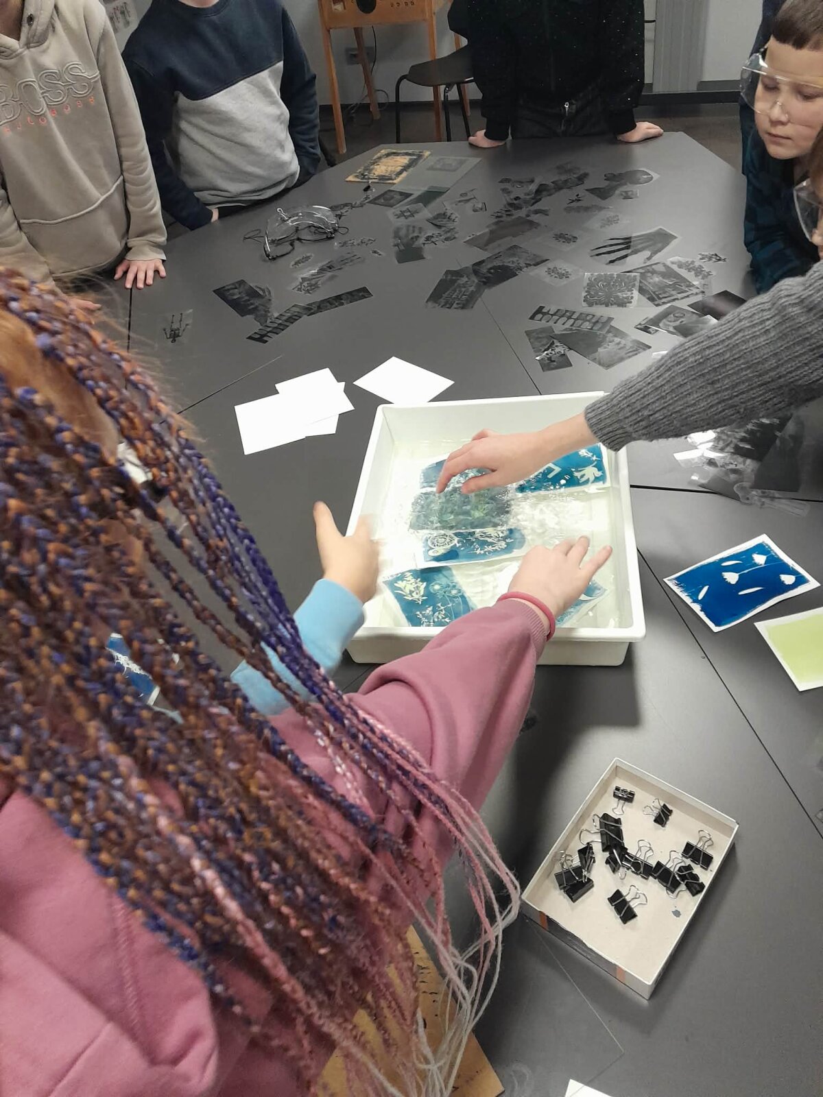 Vėliau laukė apsilankymas Fotografijos muziejuje, kur mokiniai ne tik apžiūrėjo ekspoziciją, bet ir dalyvavo edukacijoje „Mėlyni saulės atvirukai“. Kūrybinės veiklos metu jie gamino mėlynos spalvos fotografinius atspaudus – atvirukus.